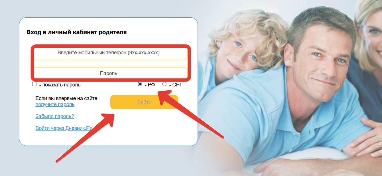 - В форме на открывшейся странице водим логин и пароль от «Дневник.ру».