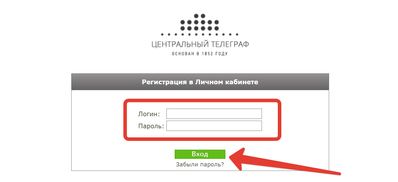 Как получить логин и пароль для входа в ЛК «Центральный телеграф»