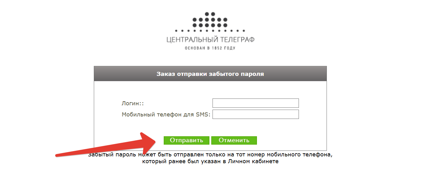 Личный кабинет «Центральный телеграф»: вход в систему, регистрация, восстановление пароля