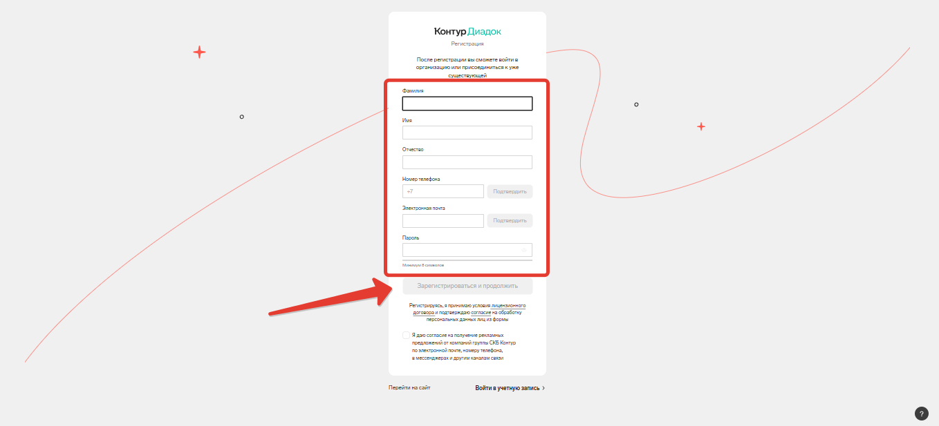 - Для подтверждения регистрации нажмите «Зарегистрироваться и продолжить».
