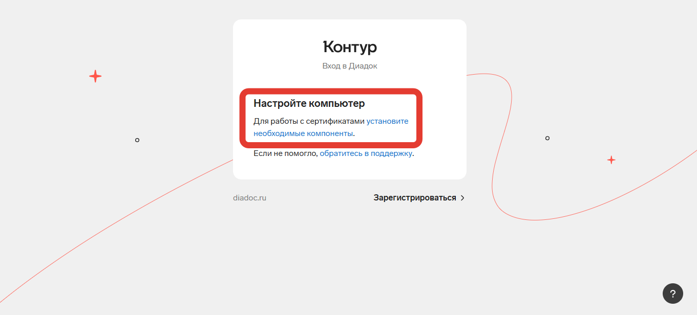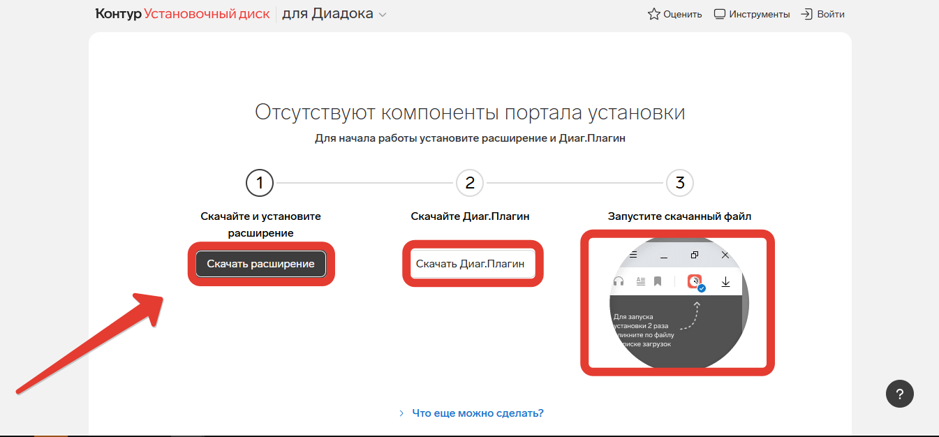 Если для работы с сертификатами у вас отсутствуют компоненты портала установки, то для начала работы перейдите на страницу https://install.kontur.ru/diadoc: