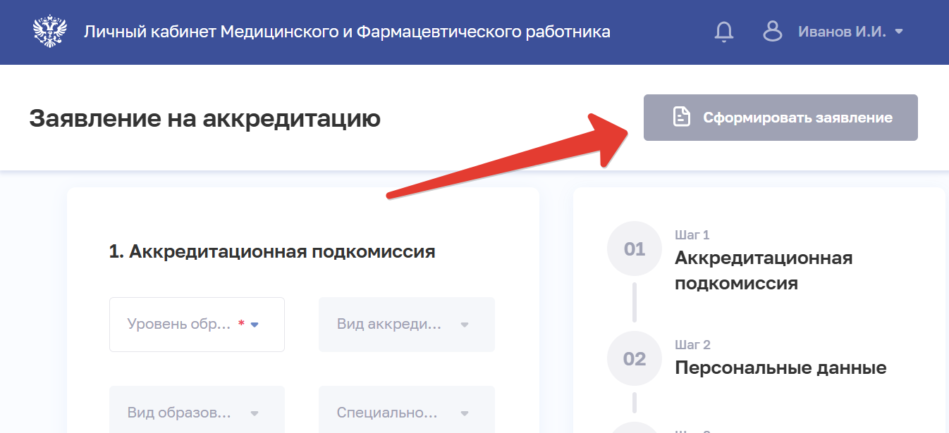 Одной из ключевых функций ЛКМР является подача заявлений на аккредитацию. Для этого необходимо: