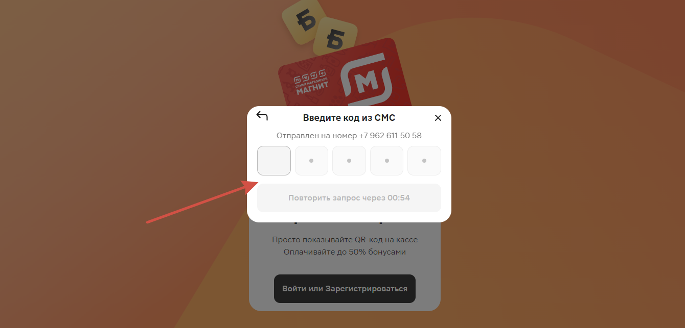 - В новом окне введите полученный код подтверждения, который придет в СМС на указанный номер мобильного.