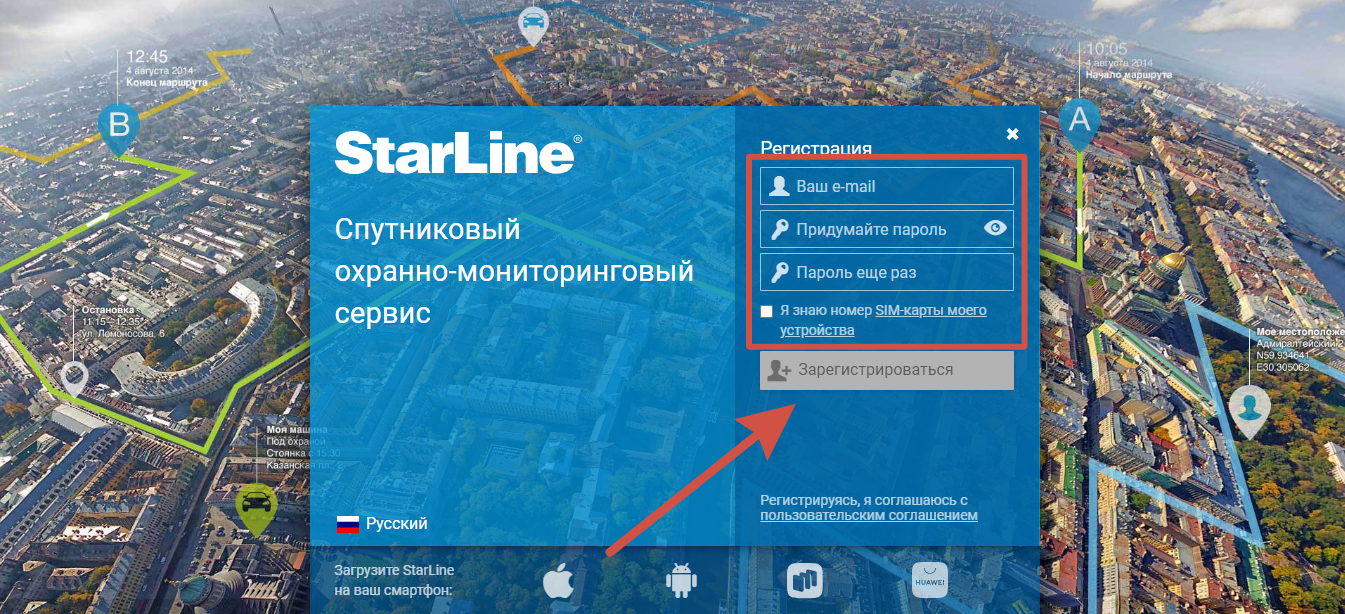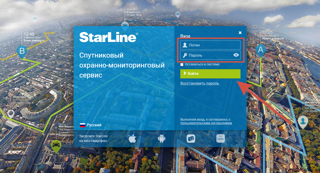- Зайдите на страничку авторизации https://starline.online/#login.