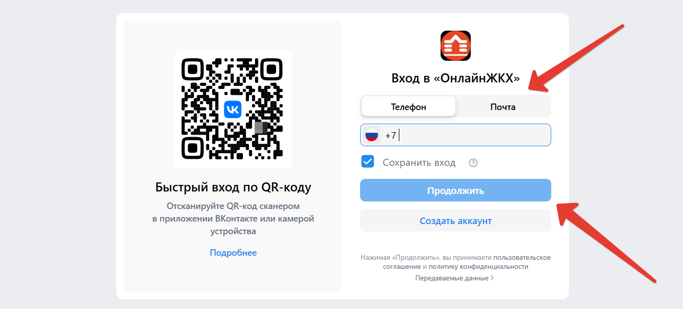 - Для входа в ОнлайнЖКХ пройдите авторизацию в VK ID.